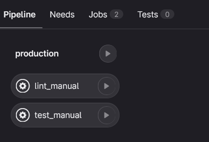 Dans ce stage, vous aurez 2 jobs : test_manual et lint_manual qui ne devront se lancer que sur la branche main.