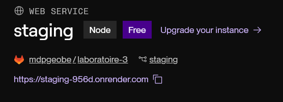 Dans ce laboratoire, nous allons voir comment réaliser un déploiement en continu à partir de Gitlab ainsi que l'intégration des commentaires des utilisateurs sur la plateforme de "versionning". Pour le déploiement, vous utiliserez Render qui propose du PaaS ("Platerforme as a Service"). Le principe est que le code y sera envoyé en fonction de vos commits et c'est la plateforme qui se chargera de mettre votre application en ligne. Ce site propose une offre gratuite qui permet de facilement faire des tests pour voir si tout fonctionne. Notez juste que si votre application est inactive pendant un certain délai, l'application va se mettre "au repos". Il faudra alors un petit délai pour qu'elle se "réveille" lors d'une requête.