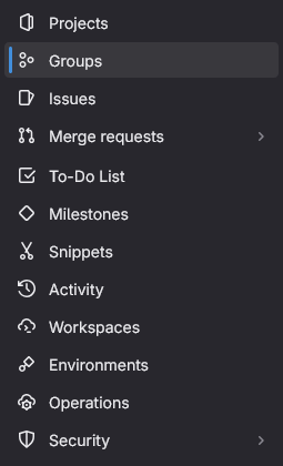 Nous allons créer un groupe qui contiendra nos 3 repository. En effet, nous voulons que le repo "global" puisse facilement accéder aux 2 autres repository. Pour ce faire, il faut se rendre sur la partie "Groups" dans le menu de gauche.