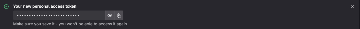 Une fois crée, n'oubliez pas de copier votre token quelque part, car une fois que vous aurez quitté la page, vous ne pourrez plus l'obtenir.